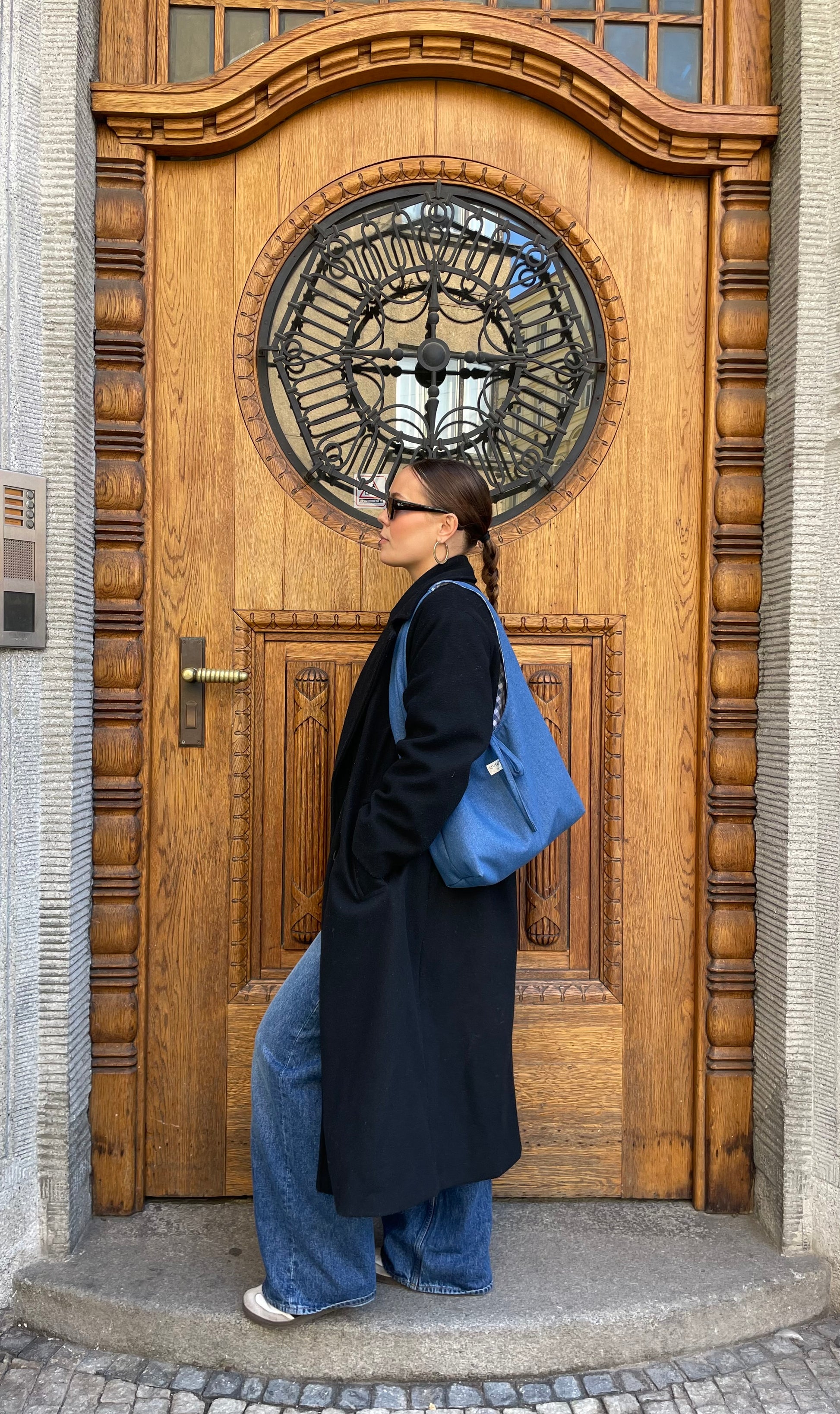 Hobow bag z džínoviny a bavlněnou podšívkou, mašlička na zavázání.